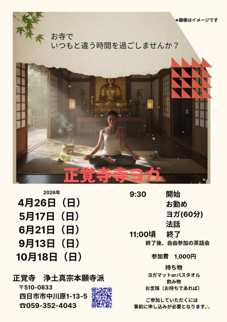 法話後はご自由にご歓談ください。 - 持ち物:ヨガマット(無ければバスタオルなど)、水などの飲み物、お持ちの方はお念珠